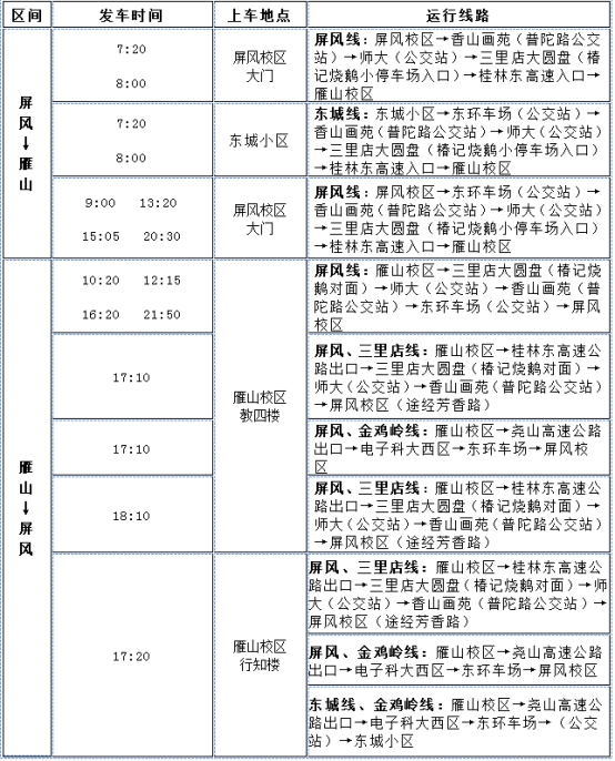 2021年春季学期校车发车时间表