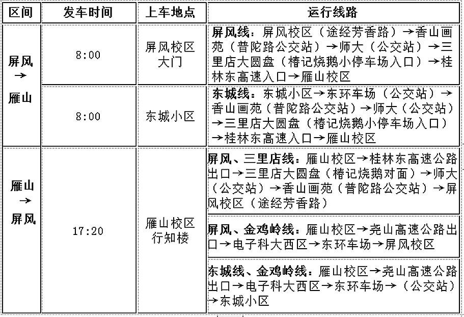 二、2019年2月22日(星期五)因学生停课,只发行政班通勤车,时间、线路如下: