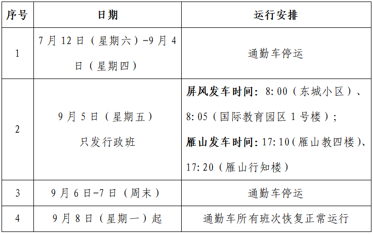 2025年暑假期间校区通勤车安排时刻表