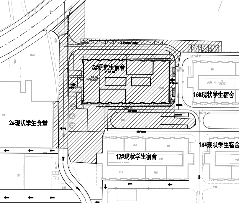 因建设雁山校区5#研究生宿舍(项目位于2#食堂东侧)的需要,拟定于2024年11月25日起至2025年11月30日对5#研究生宿舍西侧道路封闭施工,具体范围如附图阴影所示,该道路封闭期间学生由食堂南侧道路(即:附图箭头所示方向)通往校园主干道。请广大师生绕道通行,施工期间带来的出行不便,敬请谅解。