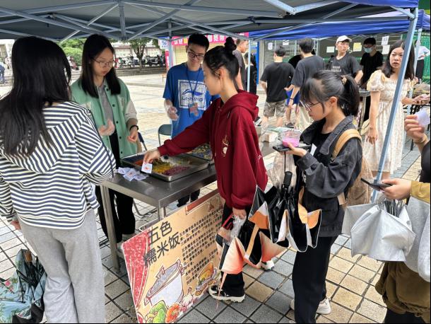 在此次美食节活动中,既让大家品尝了各色美味,又让同学们亲身实践制作美食中感受‘广西三月三’浓浓的节日氛围和喜悦,增强同学们对壮族特有节日的了解,对壮族的风俗习惯和传统文化的传承有很重要的引导作用。