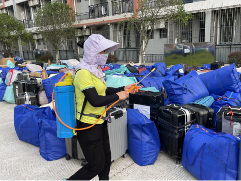 给学生行李进行消毒