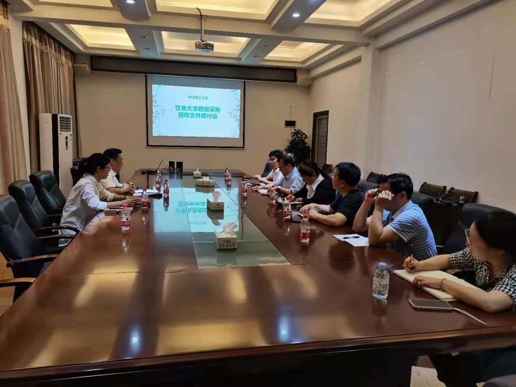 为进一步规范学校饮食大宗物资采购和管理,切实保障校园食堂食材源头安全,降低食材采购成本。7月1日上午,后勤集团在屏风校区教四楼会议室组织召开了饮食大宗物资采购招标文件商讨会。集团直属党支部书记秦勤忠、集团副总经理唐静妮、侯辉、云之龙招标集团有限公司总经理杨春及相关部门负责人参加会议。