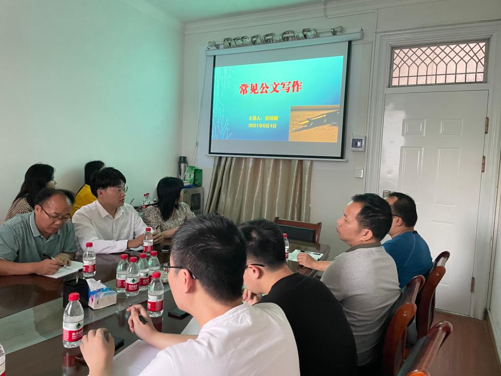 6月4日下午,雷绍湖老师就公文写作部分进行了详细介绍。培训内容包括公文的种类、构成要素、排版形式,以及公文写作的基本要求等,雷老师结合自身公文写作经验,重点讲解了通知、报告、请示、纪要等常用文种的使用方法与文字表达规范。会上,大家就公文写作的心得体会进行了积极的沟通交流。