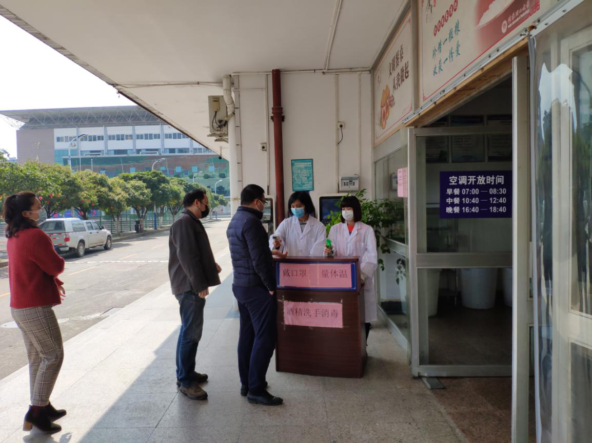 2月24日上午,雁山区食药监局工作人员来到我校雁山一号食堂检查食堂防疫消杀落实、规范职工就餐等情况。后勤服务集团总经理刘战胜及饮食中心负责人陪同检查,食药监局检查组人员听取了我校食堂关于新型冠状病毒感染的肺炎疫情防控工作并给予了充分肯定,指出要加大重视疫情防控工作,切实保障学校师生的生命安全和身体健康,打赢这场疫情防控阻击战。