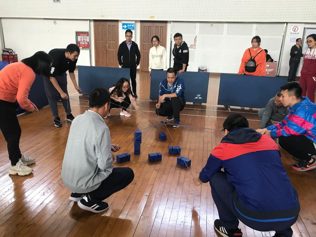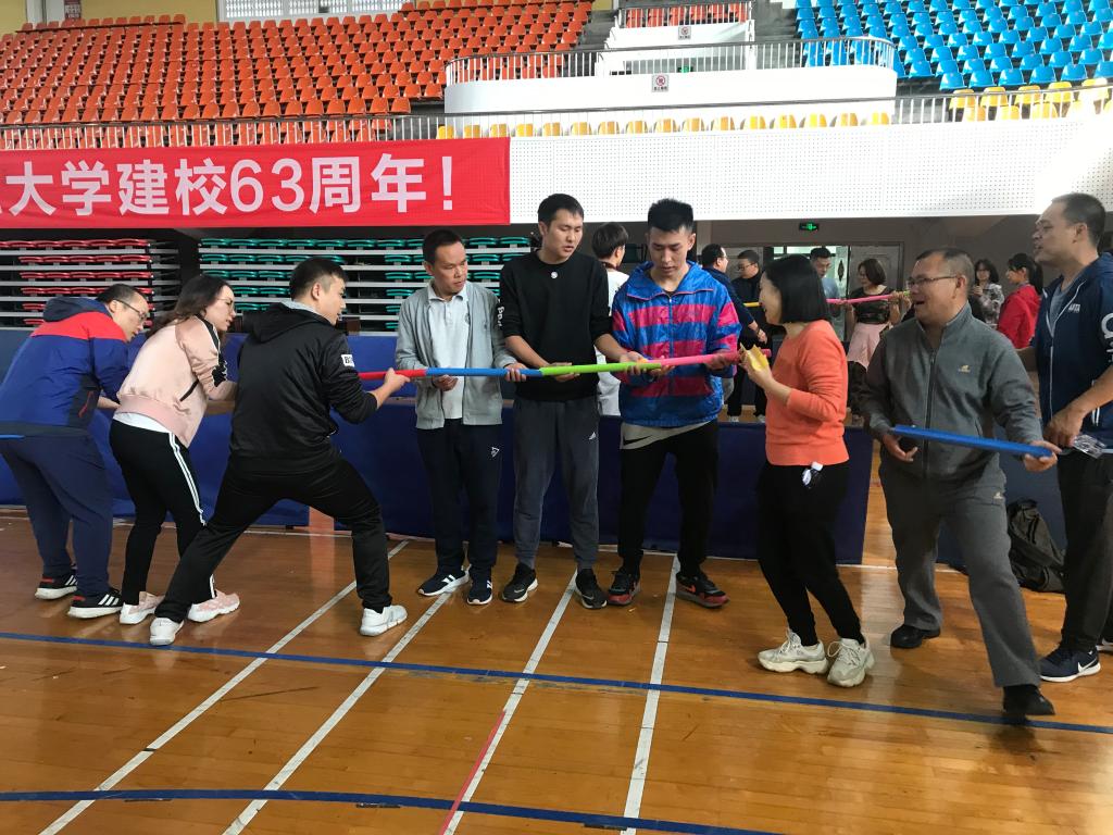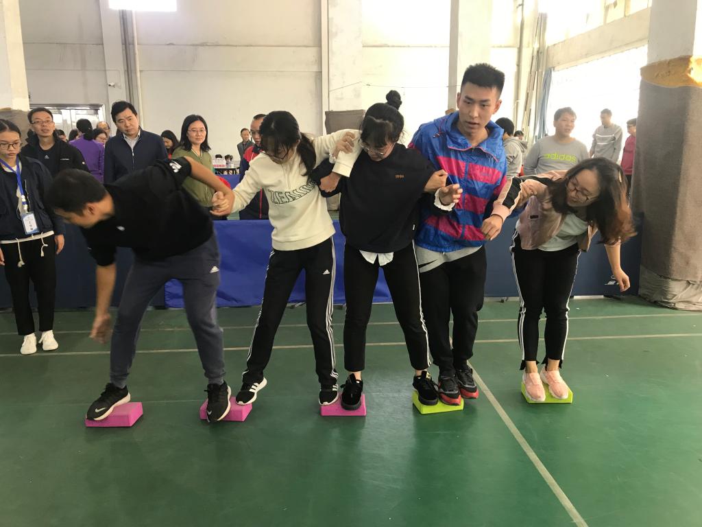 教职工趣味运动会共设技巧大比拼 、指压板挑战赛 、摸石头过河、连体兄弟旋风跑、速度大比拼等五个团体比赛项目。每一个比赛项目的设置旨在锻炼大家动手动脑和团结协作能力,这不但是智慧和体力的角逐,更是团结和协作的完美比拼。后勤的教职工们仔细琢磨每项比赛的规则,反复尝试、练习;比赛过程中他们更是激情饱满、全神贯注,团结协作。
