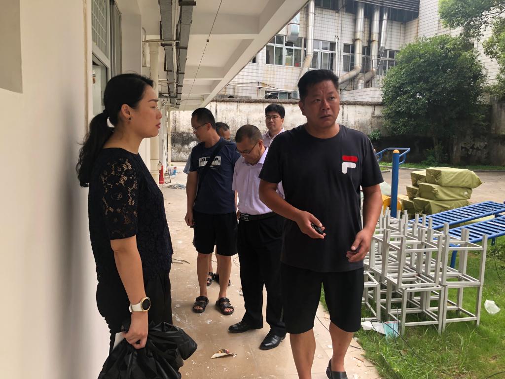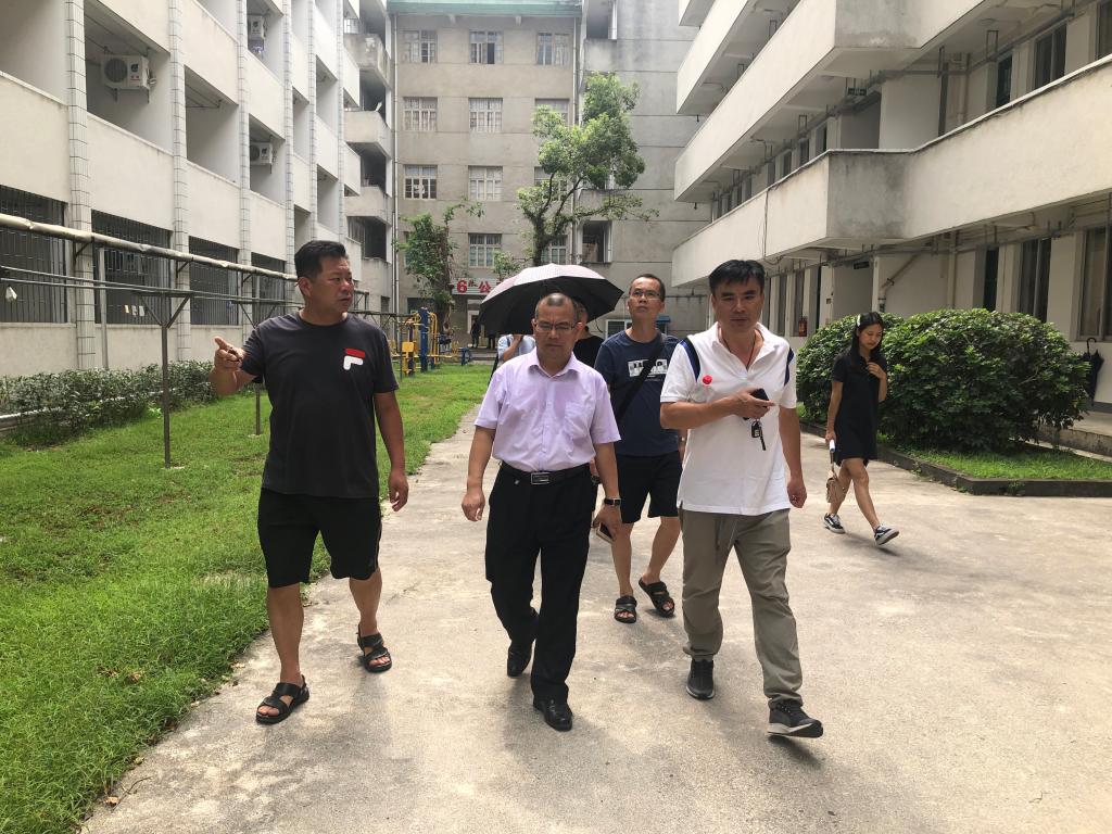 8月13日上午,后勤服务集团支部书记秦勤忠、总经理刘战胜、副总经理唐静妮、侯辉带领后勤公寓、维修、采购中心部门负责人对屏风校区学生宿舍维修改造工作进行巡查。