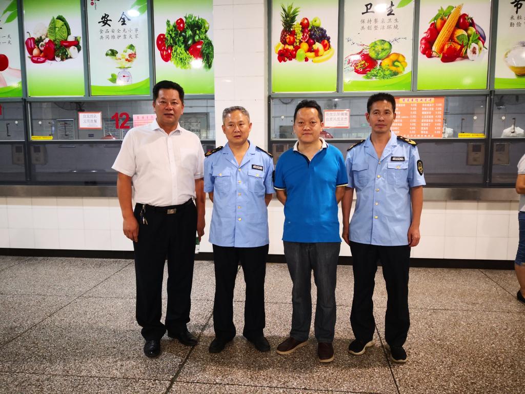 雁山区市场监督管理局局长游晓军在参观前作了动员讲话,游局长在发言中强调了食品安全的重要性,要求各单位正确树立政治意识、安全意识和全局观,对各学校、单位食堂的食品安全作了具体的要求,着重细节管理,一定严格食品操作规程,把食品安全摆在首位,要强化监管、规范操作,努力为人民群众提供安全放心的食品,保障师生“舌尖上的安全”。最后,游晓军局长对我校食堂 “色标管理”、“六T管理”、“无水化厨房”管理推行工作所取得的成效给予了充分肯定,要求各学校利用暑假时间认真对食堂后厨进行合理规划,有针对性的结合实际把食堂后厨整体改造好。