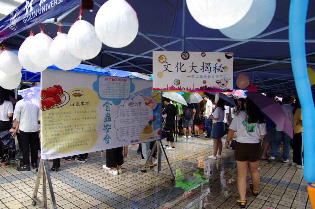 美食文化节是伙食管理委员会传统活动之一,在相关部门的正确指导下首届已完美落下帷幕。第二届美食文化节在雁山校区一号食堂广场开展,虽然天空中飘落着小雨,但依然挡不住同学们参与美食节的脚步,美食制作体验区让同学感受到制作美食的乐趣,初夏的校园因为美食文化节的开幕显得格外缤纷绚烂。