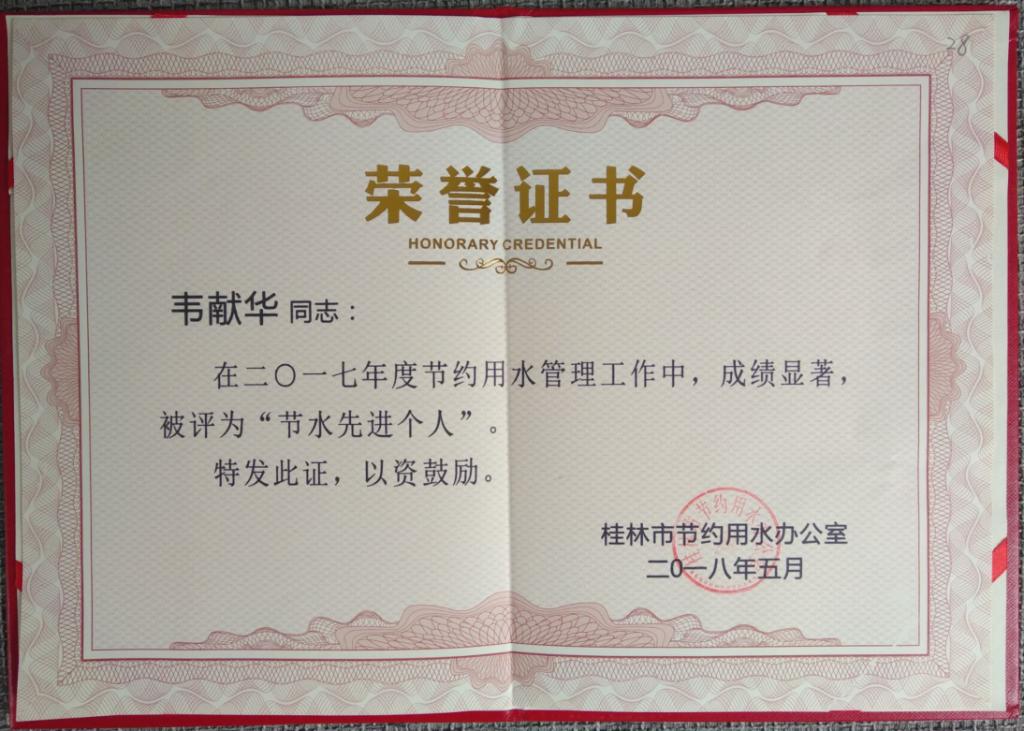 5月13日,桂林市节水办组织召开了2017年度节水工作总结会议,会议对2017年度在推进城市节水工作开展、巩固发展节水型城市创建工作中涌现的先进集体和个人进行表彰,我校荣获2017年度“桂林市节水工作先进单位”荣誉称号,后勤服务集团韦献华同志被评为2017年度“桂林市节水先进个人”。