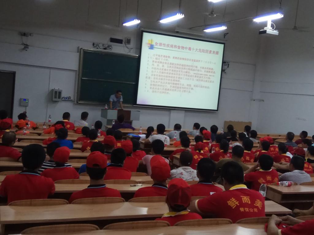 为使我校饮食中心全体员工深入了解食品安全的重要性,树立正确的食品安全卫生观念、普及食品安全知识,提高食堂员工的安全意识,预防食品安全事故的发生。根据工作计划,9月20日晚,饮食服务中心在雁山校区06506多媒体教室对今年新进员工近100人进行了食品安全知识培训,此次培训会特别邀请了桂林市食品药品监督管理局李同标科长到现场为员工进行食品安全知识的讲解。
