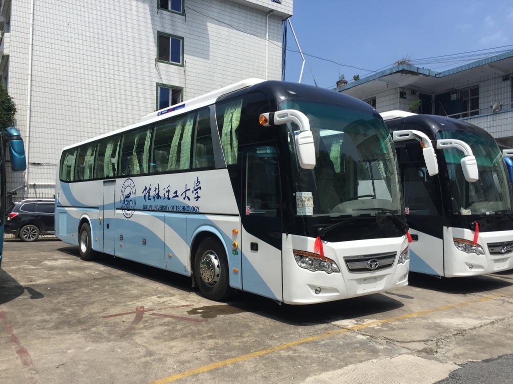 开学在即,为更好的方便我校师生交通出行,推进教职工顺利开展教学工作,后勤集团在暑期新购置了三辆54座的校车巴士。与普通客车相比,此次校车选取了醒目的蓝白色,在车身两侧印有明显的“桂林理工大学”标志,车头顶部和车门都有警示灯,大大提高了行驶过程中的安全性。同时,所有校车都配备空调,在所有座位顶部都设有开关,车内更安装强制通风装置。