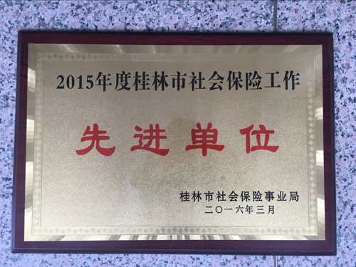 2016年3月9日上午,桂林市社会保险事业局召开了2016年全市社会保险工作会议。桂林理工大学劳动服务公司服务队在全市5670家参保单位中,被评为2015年度社会保险工作先进单位。