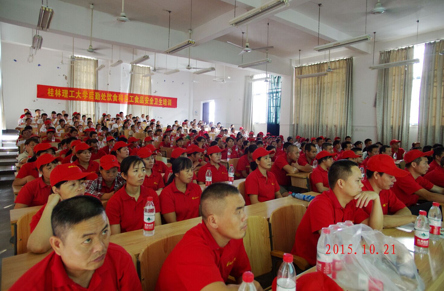 为使全体员工了解食品安全的重要性,树立正确的食品卫生观念,贯彻领会我国新《食品安全法》精神,饮食管理科于分别于2015年10月21日在雁山校区,10月22日在屏风校区组织召开了全体员工食品安全卫生培训会。内容主要包括了食品安全卫生知识、新《食品安全法》摘要、服务礼仪等多项内容。
