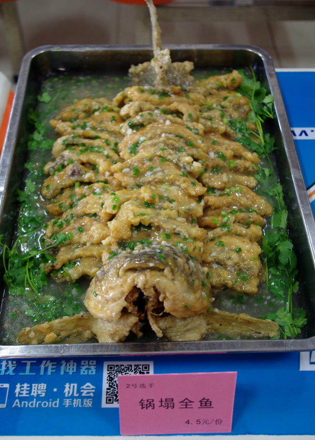 参赛选手赛前积极准备、练习,赛中一丝不苟,尽力展示自己的最佳厨艺,他们作品赢得了评委团及在场观众的阵阵好评。经过必选菜和自选菜的比赛,评委团评出了特等奖1名,一等奖2名,二等奖3名,三等奖4名。其中莫庸作品“锅塌全鱼”荣获特等奖,叶国忠作品“柱候酱鱼”和石四林作品“松子鱼”荣获一等奖。
