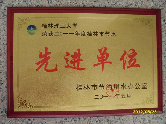 我校获得“2011年度桂林市节约用水先进单位”荣誉称号