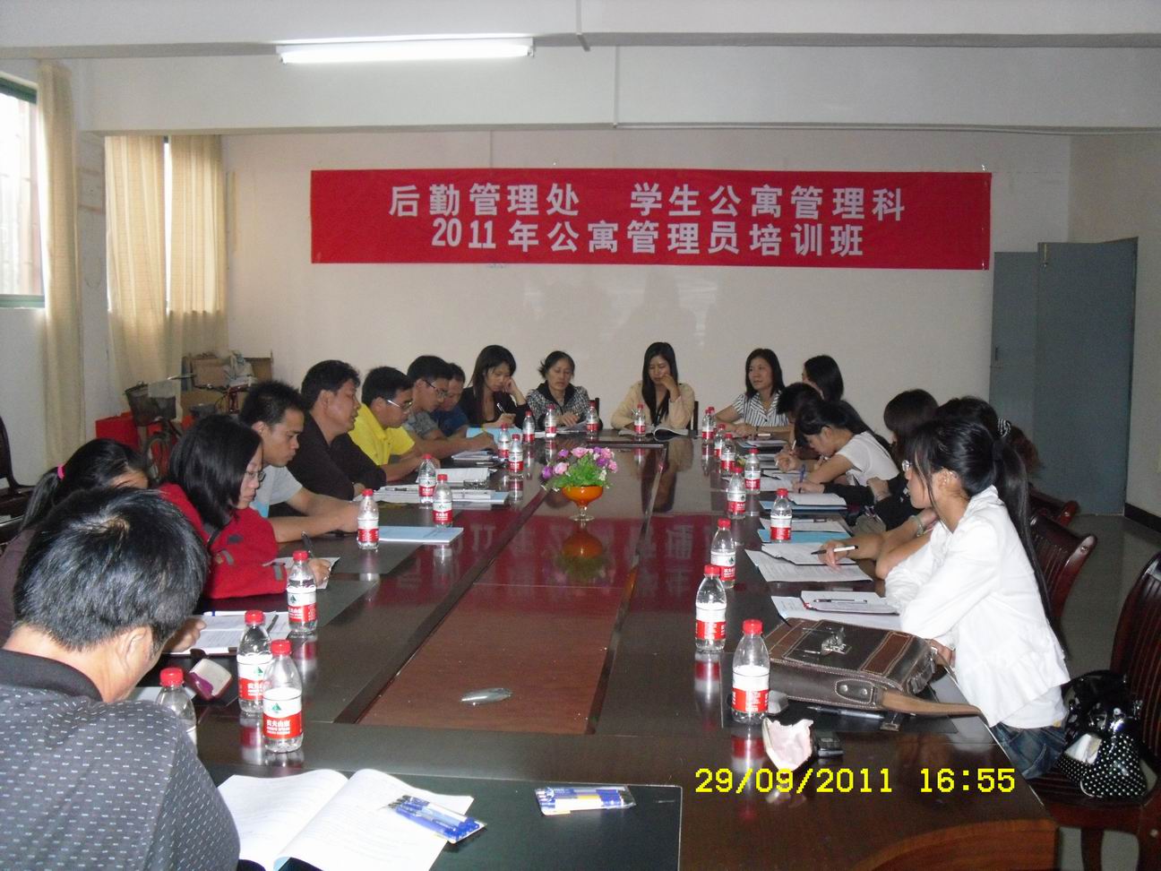 为提高学生公寓管理员的业务水平,更好的为广大学生服务,2011年9月29日,学生公寓管理科在雁山校区举办“学生公寓管理员培训班”,培训班由学生公寓管理科科长奉剑主持,后勤集团副总经理鞠敏敏老师为本次培训班开班致辞,并作总结发言,学生公寓科管理员以上人员参加了培训。