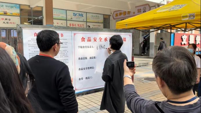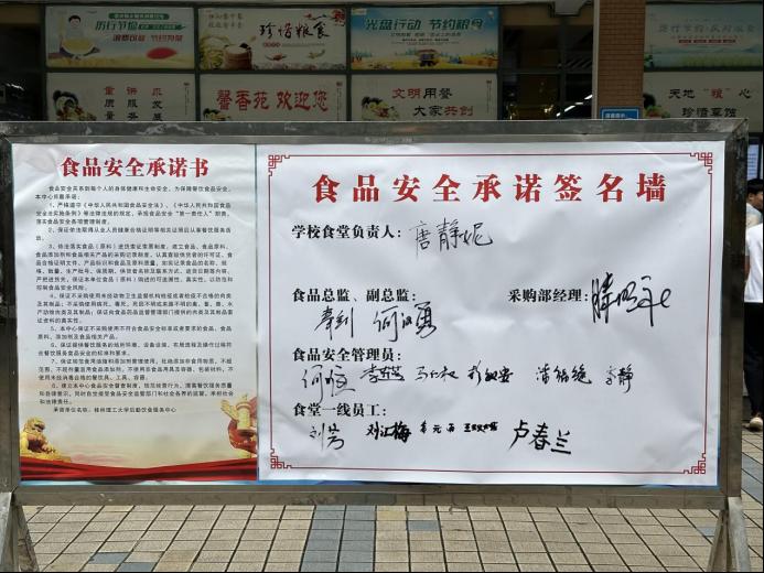 活动现场,英国上市公司365总经理唐静妮及饮食中心负责人等参与食品安全承诺签名墙,借助食品安全宣传周宣传氛围主动出击,燃起“氛围火”,织密“宣传网”全面开展食品安全督导工作。