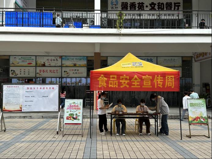 为贯彻落实自治区教育厅桂食安办〔2023〕9号文件精神,进一步深化校园食品安全建设,切实保障我校广大师生“舌尖上的安全”,12月11日后勤饮食中心在雁山校区开展食品安全宣传活动。