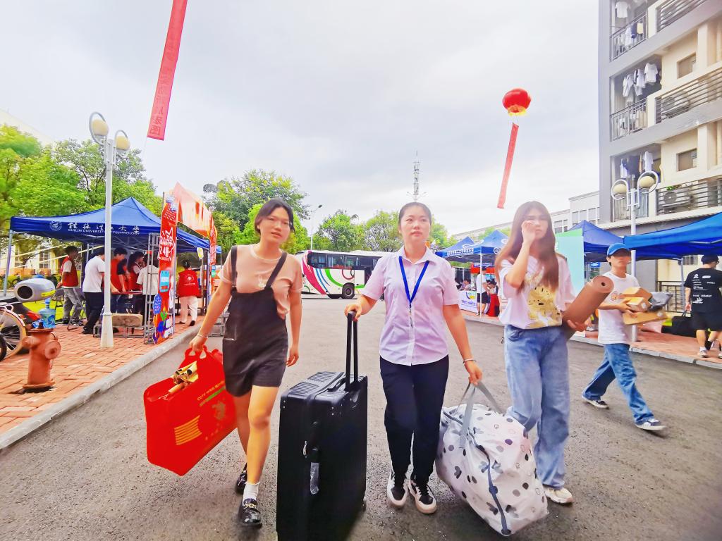 公寓人逆战热浪,与汗水为伴,提前认真清扫房间每一个角落,擦拭每一处灰尘,细微之处透露着对萌新的期待与关爱。从心出发,用爱服务,她们主动接过沉甸甸的行囊,用家人般的微笑迎接每一位怀揣梦想的萌新,用耐心和贴心及时为他们答疑解惑,让小萌新们感受到家的温暖,开启青春的新篇章。