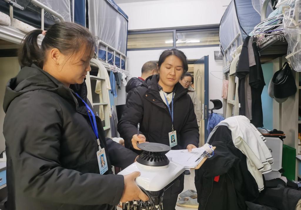 检查人员以严谨的态度,对学生的用电安全、消防安全、宿舍卫生等方面进行了全面而细致的检查,重点排查了学生公寓违规大功率电器、私拉乱接、人走未断电、易燃易爆物品等安全问题,对检查过程中发现的问题现场提出了整改意见,部分问题立行立改,对于不能立行整改的问题明确整改时限。