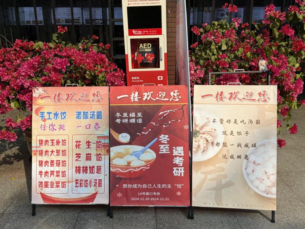 饮食服务部想考生之所想,尽能力之所及,考虑到考研学生中午用餐休息时间段,统筹安排所有食堂快餐窗口正常营业,减少学生排队取餐时间。同时,把食品安全放在首位,在特殊的节气上增添了各类汤圆、饺子的合理膳食搭配,让考研学子吃的营养、健康、安心。