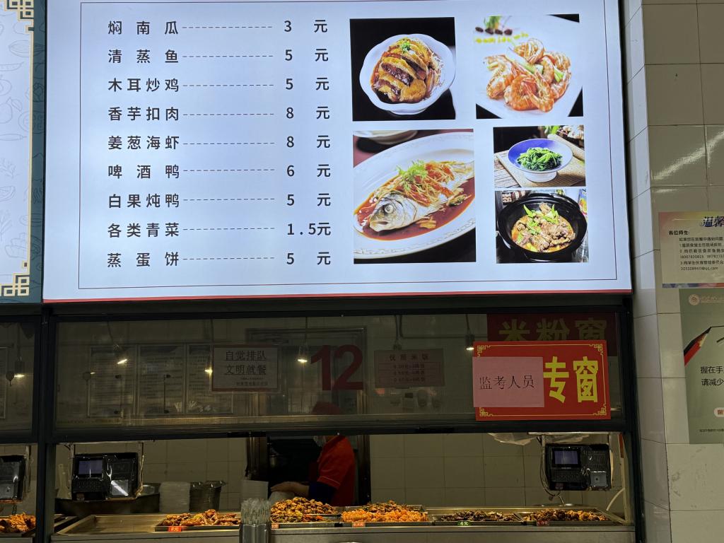 此外,饮食服务部在考研教室外提供免费的姜糖水,定时为考务人员配送营养盒饭,还在馨香苑一楼食堂内设立监考老师窗口,为考生和在岗工作人员提供了贴心的服务,为广大考生和监考老师营造舒适的考试环境。