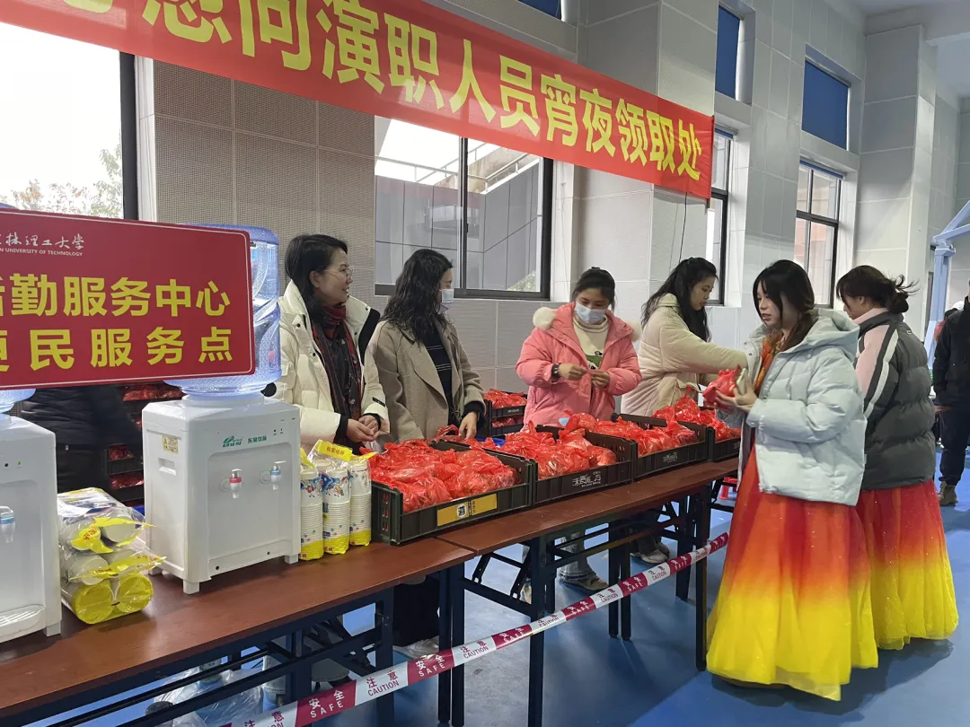 活动当天,后勤饮食服务部工作人员严格把控食材的安全与质量,为演职人员提供了300余份盒饭配送服务。此外,还免费供应了热气腾腾的姜糖水,以最高标准的服务和质量,为晚会默默付出,展现后勤风采。