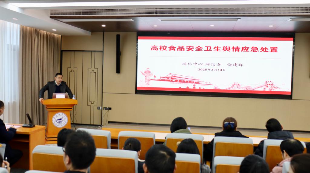 会议上,网信中心副主任饶建辉作了题为 “高校食品安全卫生舆情应急处置” 的专题讲座。他分别从校园食品卫生安全典型案例分析、人工智能时代舆情工作面临的挑战、舆情应急处置的基本原则与方法、守正创新营造良好氛围等方面,深入浅出且形象生动地详细阐述了如何处置校园食品卫生舆情。通过此次培训,参会人员对舆情应急处置的关键要点和流程有了更加直观、深刻的理解。