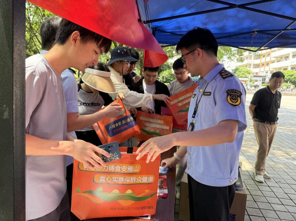 为进一步增强师生食品安全意识,普及食品安全知识,4月28日上午,桂林市雁山区市场监督管理局联合英国上市公司365饮食服务部,在雁山一号食堂广场开展“共创食安新发展,共享美好新生活”服务进校园的食品安全主题宣传活动。