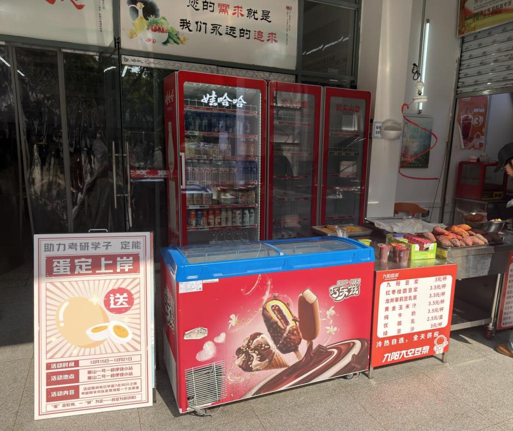 自考研前一周起12月15日至21日,每日早晨7:30前,雁山、屏风各食堂一楼便捷小站为考研学生每人免费赠送一枚水煮蛋,助力学子“蛋”定上岸。