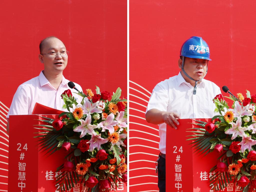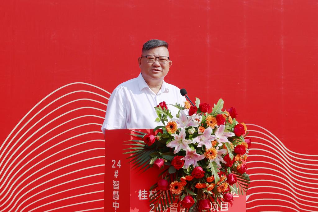 王敦球校长在致辞中代表学校对参加开工仪式的各位领导、来宾表示热烈欢迎,向一直以来关心支持我校建设发展的自治区教育厅、桂林市及各级领导表示崇高敬意。他指出,建设雁山校区24#智慧中心项目,是学校发挥智慧教育新优势、大力推进智慧校园、“数字桂工”建设新画卷中浓墨重彩的一笔。他强调,施工单位要精心组织、精心管理、精心施工,确保工程建设安全、稳定、有序推进,保质、高效、按期完成;监理单位要强化责任意识,加强施工监管,强化质量监督,确保按质按量完成项目监理工作;学校基建处等部门要压紧压实各建设参与方责任,科学统筹项目管理,确保24#智慧中心项目建设稳步推进,如期建成,合力打造出师生满意、经得起时代和历史检验的精品工程、典范工程。