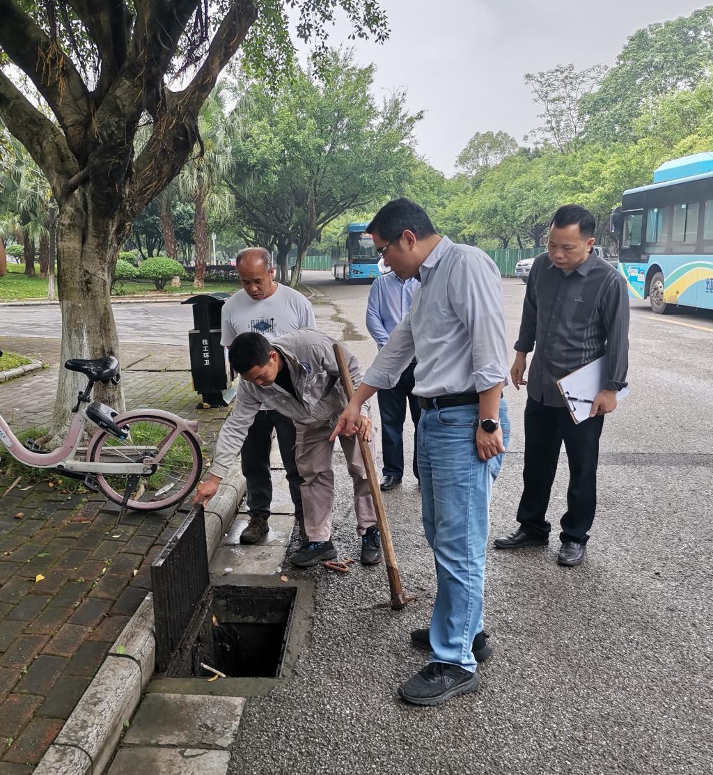 4月份以来,针对桂林市已进入汛期,强降雨、雷击等极端天气呈多发状态,基建处汛期保障工作专班在谢小军处长的带领下,对学校屏风校区、雁山校区排水排污井、变压器机房、在建基建项目等安全情况进行安全巡查,巡查出了部分排水沟损坏、雨水井堵塞及人行道泥泞等三项安全问题,并将问题转由维修管理科、预算施工科分类处置。