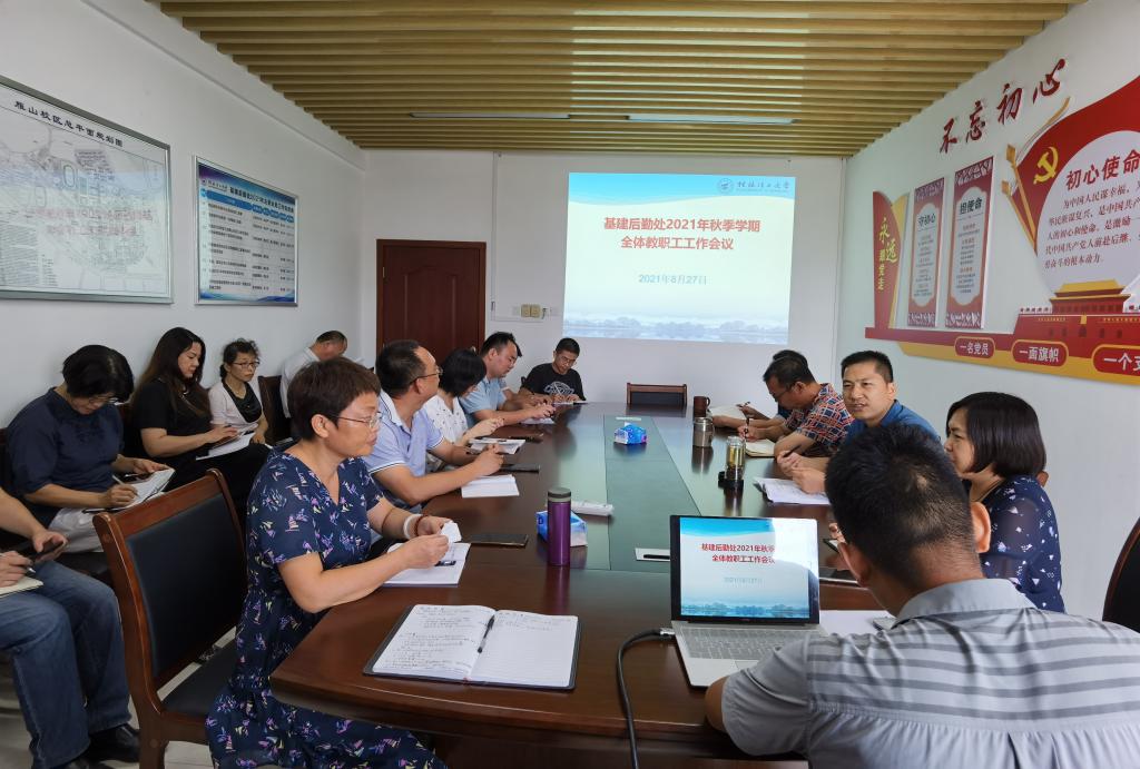 8月27日下午,基建后勤处在雁山行知楼510会议室召开新学期开学暨安全工作布置会,会议由代武社处长主持,基建后勤处全体教职工参加了会议。
