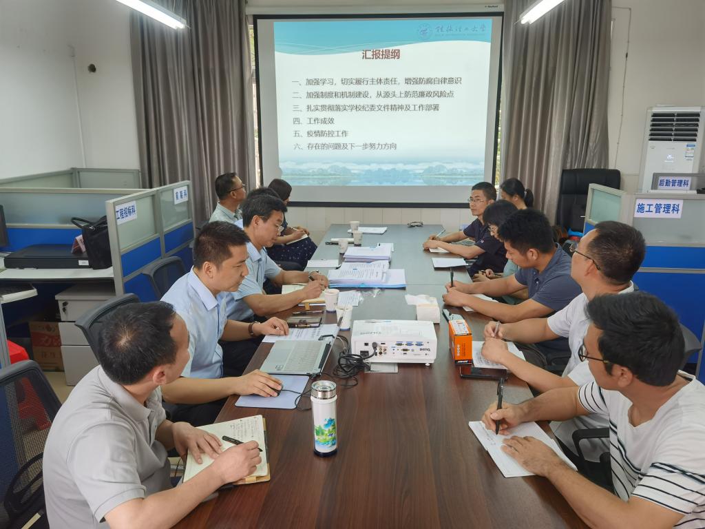 6月10日上午,学校党委常委、纪委书记韦学敏在监察室负责人陪同下到基建后勤处调研指导工作。基建后勤处班子成员进行了工作汇报。