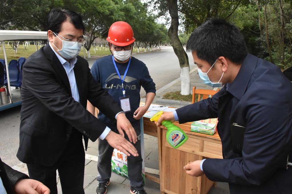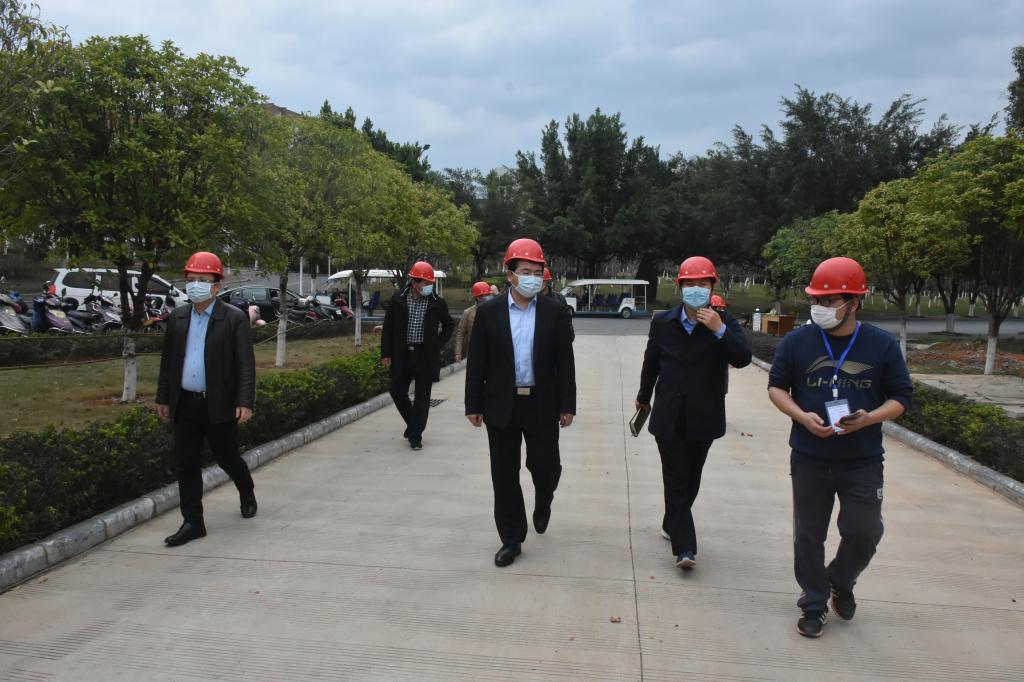 2月24日,学校党委书记李国忠一行到雁山校区新建7a学生宿舍施工现场检查指导复工前的准备工作情况,基建后勤处全体领导班子成员陪同检查。