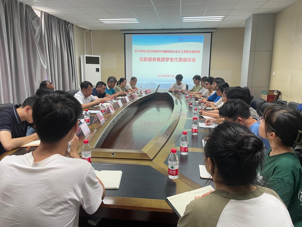 为深入开展学习贯彻习近平新时代中国特色社会主义思想主题教育,落实相关文件精神和工作部署。6月15日下午,后勤服务集在雁山校区召开学生调研座谈会。后勤各中心负责人以及各学院学生代表参加会议,座谈会由后勤公寓管理中心经理李文斌主持。