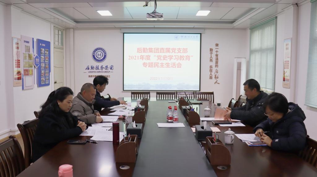 为深入贯彻落实2021年度党员领导干部党史学习教育专题民主生活会的要求,1月13日下午,后勤集团直属党支部在屏风会议室召开领导干部专题民主生活会,会议聚焦“学党史、悟思想、办实事、开新局”,盘点学习收获,认真检视问题。学校党史学习教育督导组成员饶建辉、杨微梅同志到会指导,后勤全体领导班子参加,会议由后勤支部书记秦勤忠主持。