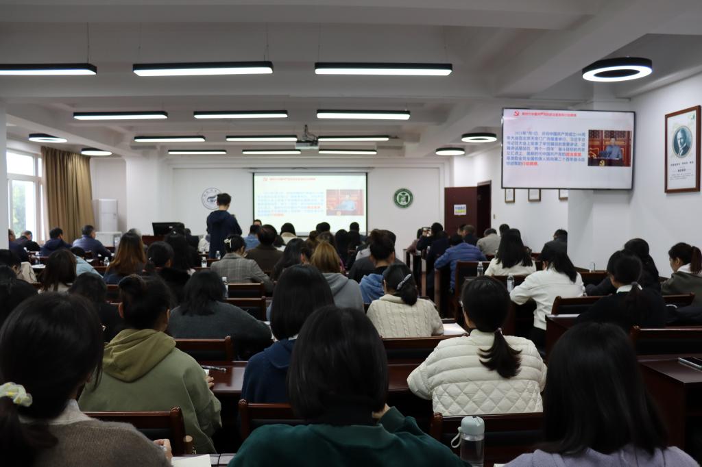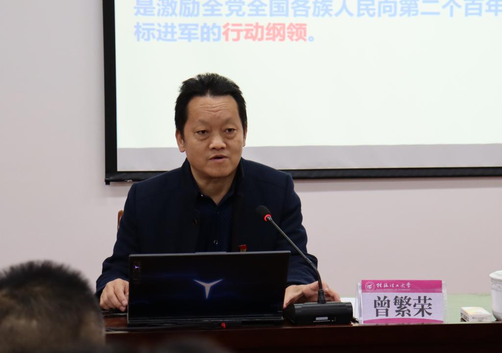 10月21日下午,学校党委常委、总会计师曾繁荣为后勤集团直属党支部、商学院、财务处全体党员作题为“以史为鉴、开创未来,夺取全面建成社会主义现代化强国新胜利——深入学习习近平总书记‘七一’重要讲话精神”的宣讲报告。
