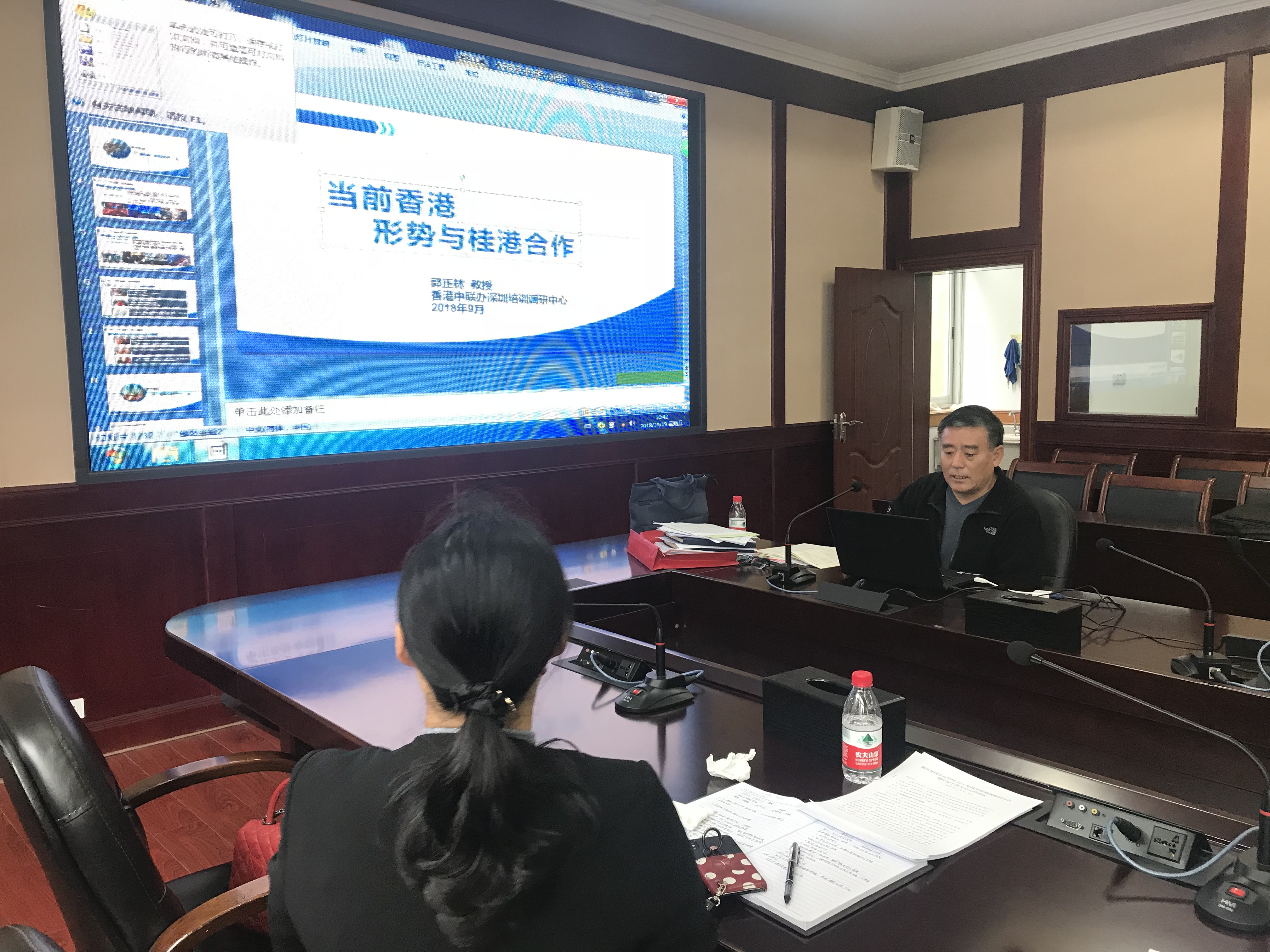 为深入学习宣传贯彻党的十九大精神,加强形势政策教育,后勤集团直属党支部以“当前香港形式与桂港合作”为主题,由党支部书记程安福为全体党员举办形势政策专题党课。