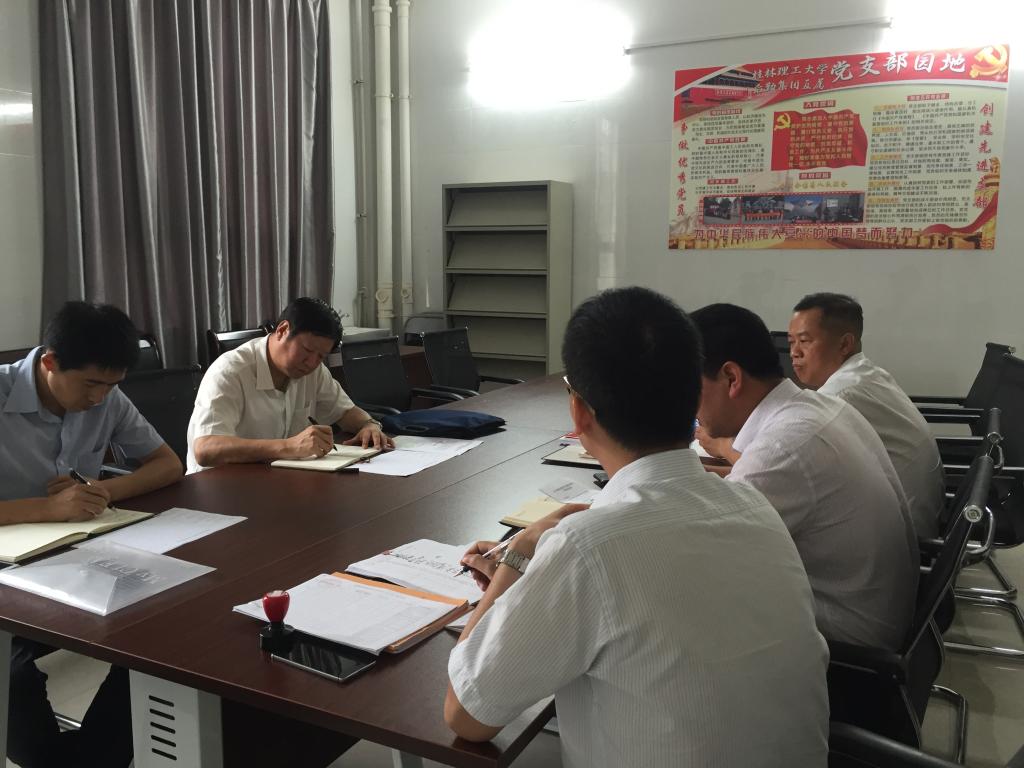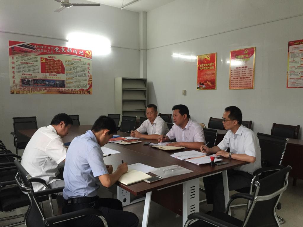 根据《关于开展基层党组织软弱涣散专项整治工作中期检查的通知》的安排,5月31日下午,检查小组副处级组织员梁保熙及宋玉辉科长在雁山后勤党员活动室对我支部开展基层党组织软弱涣散专项整治工作中期检查,后勤集团直属党支部书记刘战胜、组织委员兼纪检委员周玉龙、宣传委员兼统战委员经本钊参加本次督查工作会议。
