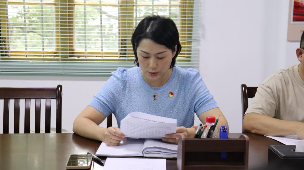 随后,后勤服务集团副总经理唐静妮和校医院副院长戚武分别领学了《中共中央关于加强新时代廉洁文化建设》以及《关于加强新时代党员干部家庭家教家风建设的意见》,对党员干部强化廉洁自律意识,增强廉洁从政、廉洁用权、廉洁修身、廉洁齐家的思想自觉提出了新的更高要求。
