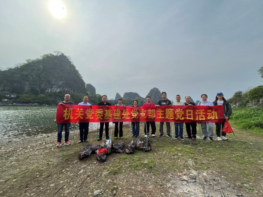 3月29日下午,为深入贯彻落实习近平总书记在桂林视察时重要讲话精神,牢记“保护好漓江、保护好桂林山水”的殷切嘱托,基建处党支部在漓江虞山桥至解放桥段开展“牢记嘱托 保护漓江 保护桂林山水 ”主题党日活动。