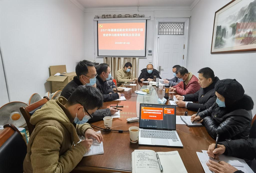 2022年1月14日上午,基建后勤处在屏风校区后勤保卫楼301会议室召开2021年度党员领导干部党史学习教育专题民主生活会。会议由处长代武社主持,全体党员领导干部及其他党员同志参加。