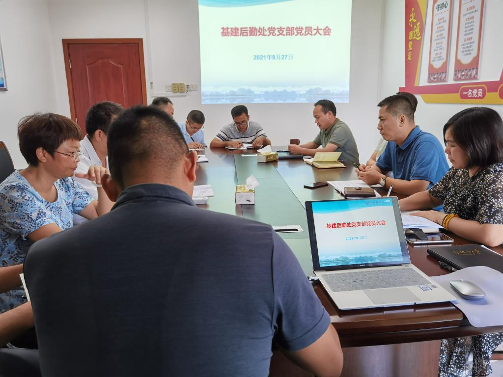 9月27日下午,基建后勤处党支部在雁山校区行知楼510会议室召开支部党员大会,讨论刘锋同志预备党员转正问题,会议由支部书记代武社同志主持。