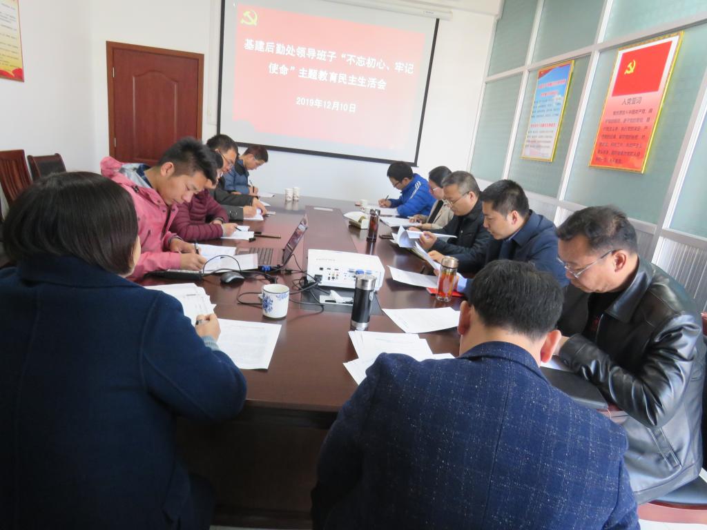 根据机关党委“不忘初心、牢记使命”主题教育工作部署,12月10日下午,基建后勤处在雁山校区行知楼B510会议室召开了党员领导干部“不忘初心、牢记使命”主题教育专题民主生活会。民主生活会由支部书记、处长代武社主持。学校党委常委、副校长王敦球同志参加会议,学校主题教育指导二组江玲同志到会,支部其他党员列席会议。