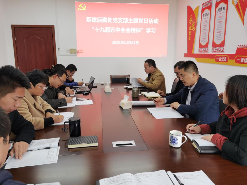12月1日下午,基建后勤处党支部在雁山校区行知楼B510会议室开展党员主题党日活动,传达学习党的十九届五中全会精神。